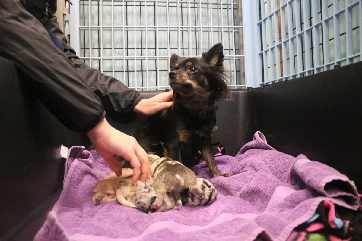 Polka Dot with her puppies, born Oct. 13, 2025